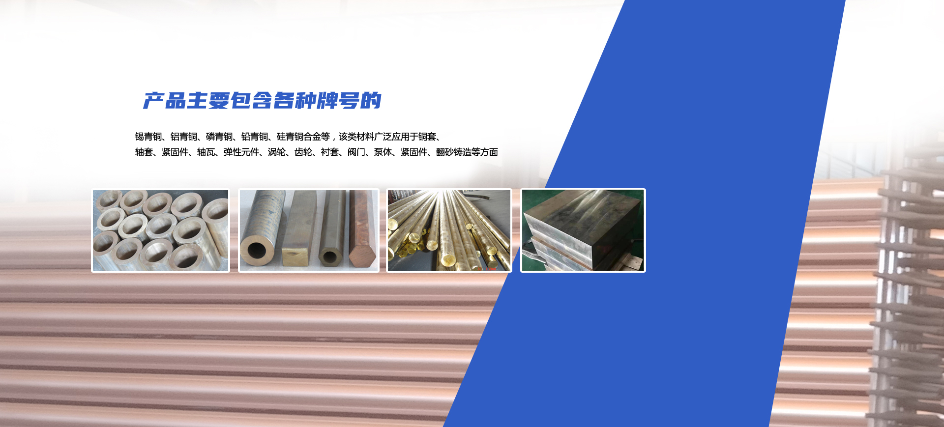 公司擁有多條連鑄熔銅生產(chǎn)線,并配備全分析直讀光譜儀、專業(yè)從事銅合金材料的研發(fā)、加工、銷售,產(chǎn)品主要包含各種牌號的錫青銅、鋁青銅、磷青銅、鉛青銅、硅青銅合金等,該類材料廣泛應(yīng)用于銅套、軸套、緊固件、軸瓦、彈性元件、渦輪、齒輪、襯套、閥門、泵體、緊固件、翻砂鑄造等方面。